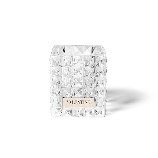 アートオブジェとして構想されたガラス製のキャンドルホルダー「ヴァレンティノ レ ブジョワール」は、ローマ宮殿を象徴するブニャート装飾に着想を得たヴァレンティノのアイコニックなスタッズが特徴です。インテリアの中心的存在になるキャンドルホルダーは、メゾンの芸術性と時代を超えたエレガンスへのこだわりを体現しています。キャンドルだけではなく、メイクブラシホルダーや大切な記念品のディスプレイなど、装飾品としても再利用することができ、ヴァレンティノの世界観を永く表現し続けます。