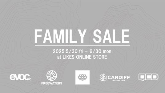 『686』『FREEWATERS』『CARDIFF SNOWCRAFT』『evoc』『QCD』を取り揃えるLIKES ONLINE STOREにて、5月30日(金)~6月30日(月)まで期間限定開催。