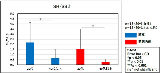 【図4:頭皮および前腕内側角層細胞のSH/SS比】