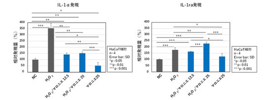 【図8:過酸化水素水処理したHaCaT細胞のIL-1αおよびIL-1ra発現に与えるマロニ抽出液の影響】