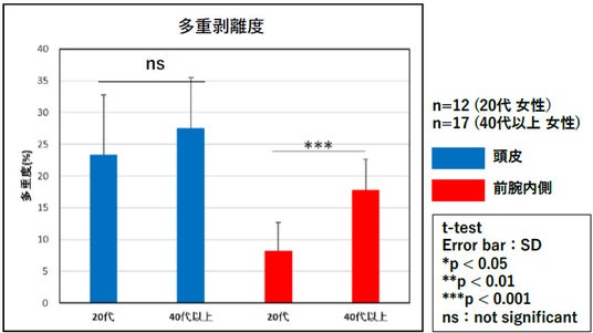 【図3:頭皮および前腕内側角層細胞の多重剥離度】