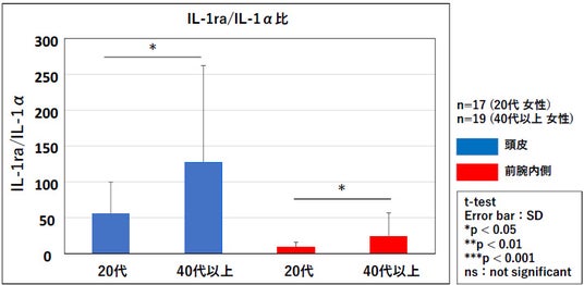 【図6:頭皮および前腕内側角層細胞のIL-1ra/IL-1α比】