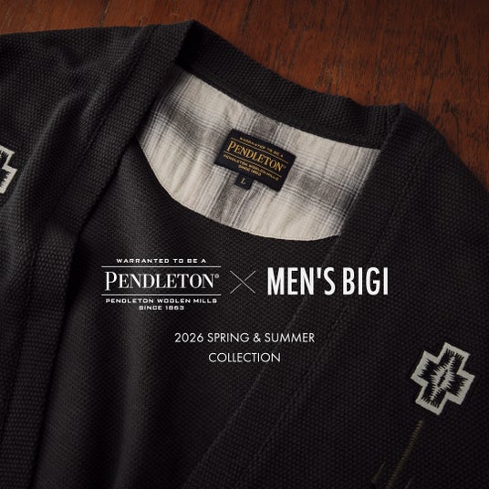 PENDLETON×MEN’S BIGI コラボレーションモデル、鹿の子Tシャツのデザインをベースに仕立てた特別仕様カーディガン。