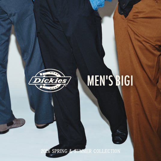 Dickies × MEN’S BIGI スペシャルコラボレーションモデル。Dickiesの人気定番モデル「875」をベースに、MEN’S BIGIならではの視点で無骨な中にも上品さと洗練を併せ持つ、大人のワークパンツへと再構築。