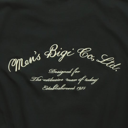 三型目は、左胸とバックに筆記体の刺繍を施し、レーヨン糸特有の光沢がさりげない上品さを演出。