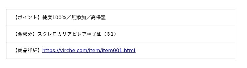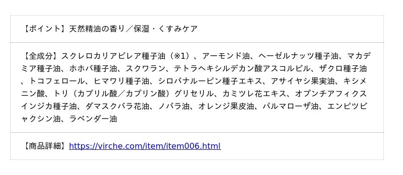 VIRCHEは日本初となる国内製造マルラオイルを発売(※2)。100%マルラオイルだけを使用し、防腐剤・香料・着色料すべて無添加で、エコサートコスモスナチュラル認証を取得済。