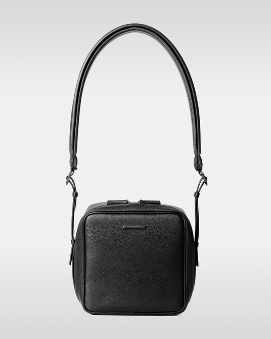 ボディとショルダーストラップには水や汚れに強い防水シュリンクレザーを採用。厚みのあるクッション入りストラップは、肩への負担を軽減すると同時に、存在感あるシルエットがスタイリングのアクセントにもなります。