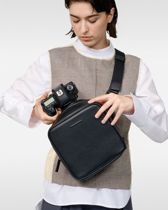 クロスボディ型の「ウィークエンドカメラバッグ」から派生し、ユーザーからのリクエストが多かったショルダータイプが登場。ラージとスモールの2サイズ展開で、カメラと必要なアイテムをスマートに収納できます。製品名の通り、週末のカメラライフを美しく支えるバッグです。シーンを選ばないミニマルデザイン