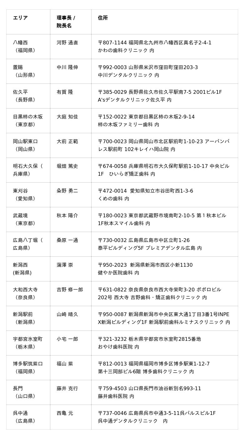 ■ホワイトエッセンス 新加盟院一覧 (2025年9月オープン)