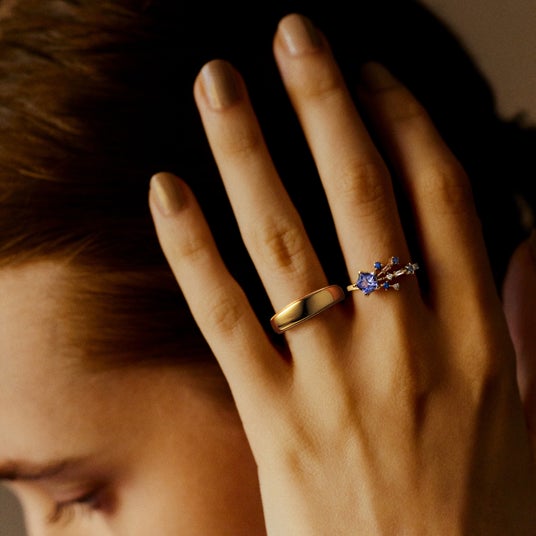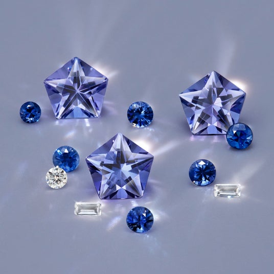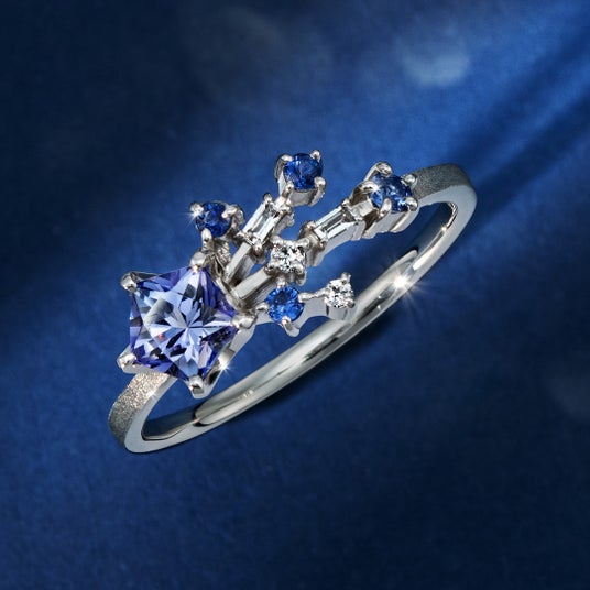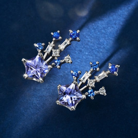 タンザニアでしか採掘できないブルーの宝石「タンザナイト」を主役に、ダイヤモンドとサファイアで煌めきの軌道を描く
