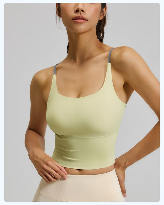 揺れない ずれない 胸元しっかりホールド ハイサポートキャミ カップ付きヨガトップス