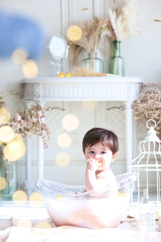 神奈川県川崎市、ライフスタジオ新百合ヶ丘店では1歳の記念を機会にご来店いただく多くの皆様に撮影をより楽しんでいただき素敵な時間になるようにと願いを込めて、ミルクバス撮影を行っております。