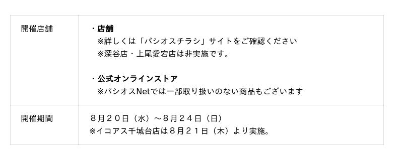 ・「パシオス公式LINE」(https://lin.ee/BbL0ZDj)