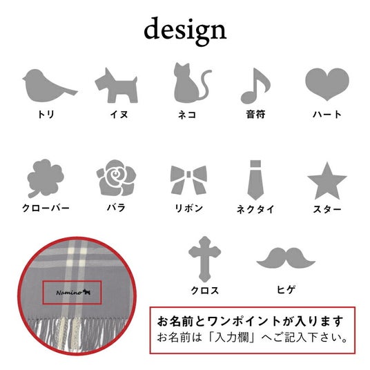 さらに、お名前の隣には、オリジナルのワンポイントデザイン(全12種類)をプラス。