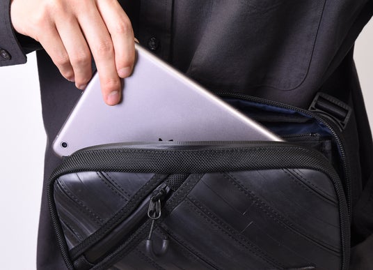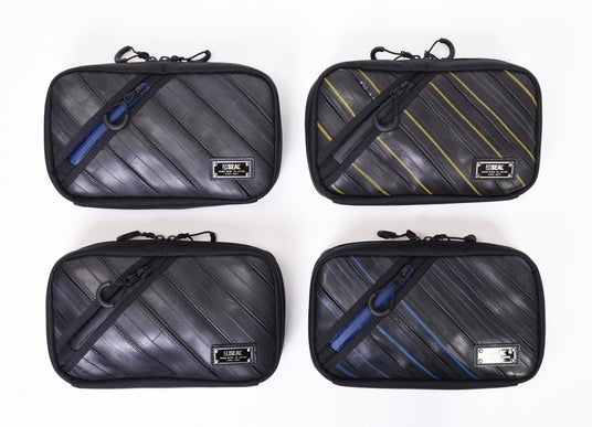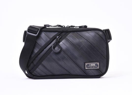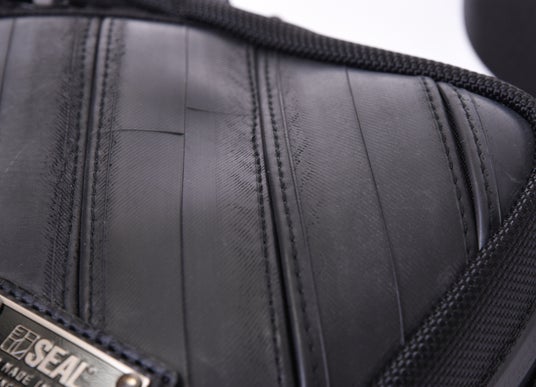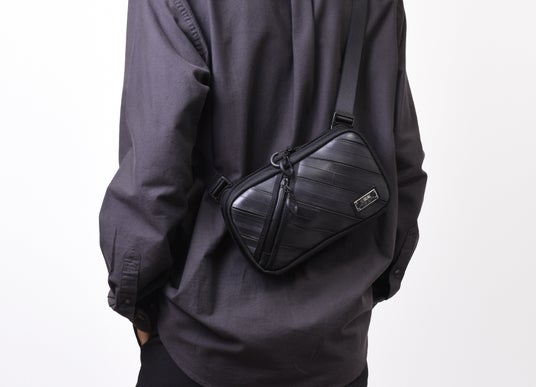 今回発売される特別モデルのバッグはSEALの人気アイテム「オーガナイザーショルダーバッグ」をベースに、表面の素材に自転車のタイヤチューブを使用しました。細長い形状を活かし、1本1本丁寧に縫い合わせることで個性豊かな表情のデザインに仕上がりました。タイヤチューブ素材の特性である高い耐久性・防水性に加え軽量性も備えており、サイクリングやアウトドアシーンでも活躍します。