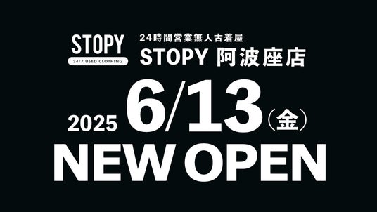 株式会社JAM TRADING(大阪府大阪市/代表取締役 福嶋 政憲)が運営する無人古着屋「STOPY(ストッピー)」は、2025年6月13日(金)12時に「STOPY 阿波座店」をオープンいたします。