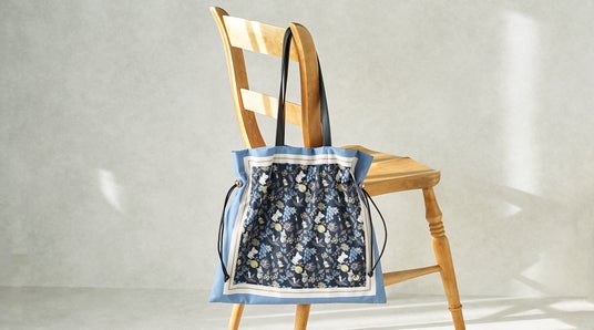 華やかなスカーフプリントと軽やかな素材感が織りなす上質な佇まい。ムーミンの世界観をまとったトートバッグが、日常に優雅な彩りを添えます。