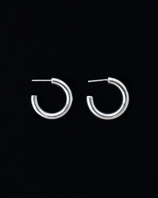 シルバー925の光沢が凛とした強さを漂わせるフープピアス