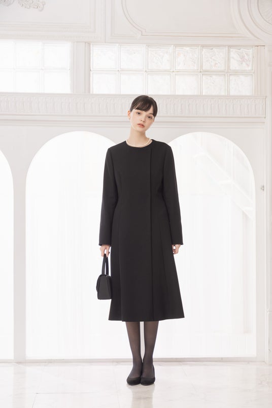 ケープや袖口レースを取り外すことで、シンプルなフォーマルスタイルにもなり、葬儀にも安心して参列できます。今すぐ必要がなくても、急な冠婚葬祭に備えられる一着です。
