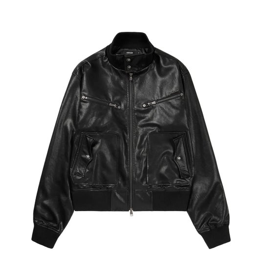 ・ AAKAM High-Neck Leather Jacket (Black) : 15% OFF