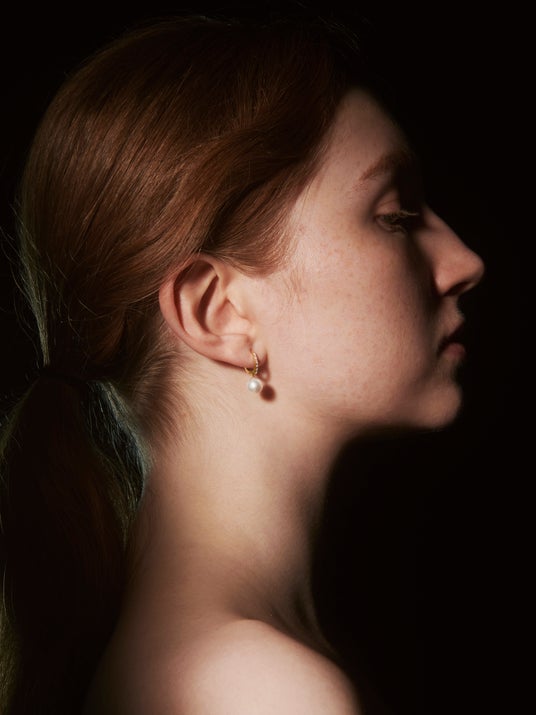 淡いグレーのヴェールを纏ったパールは成熟の美をたたえ、耳元で揺らめく流麗なフォルムとともに、知的な表情を実現します。