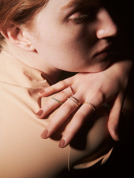 embrace emerald ring ¥88,000 embrace moonstone ring ¥66,000 embrace pink sapphire ring ¥99,000 embrace smoky quartz ring ¥74,800 diamond half eternity ring YG ¥48,400
