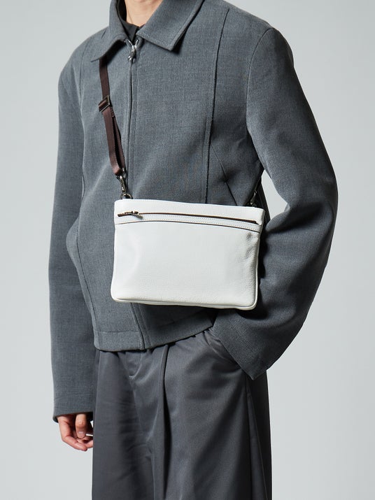 カジュアルなサコッシュを上質なレザーと高級感あるメタルパーツで格上げした大人が持てるサコッシュ。 本体は薄マチながら、手回り品をしっかりと収納可能。身軽に出かけたい日とにぴったりなサイズ感です。