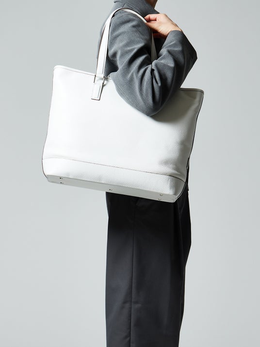 ボストンバッグ並の収納力を誇る大型トートはとっておきの旅のパートナーに。キャリーバッグに取付けるためのストラップをバックポケットに内蔵しています。