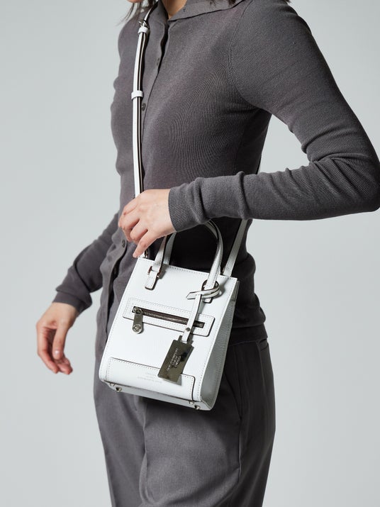 カジュアルから上品な装いまで幅広いスタイリングにフィットするミニマルな縦長デザイン。 ミニ財布やスマートフォンなど必要最低限の手荷物が収まるミニサイズで、アクセサリー感覚で持てます。
