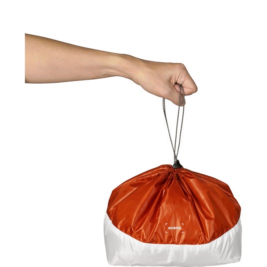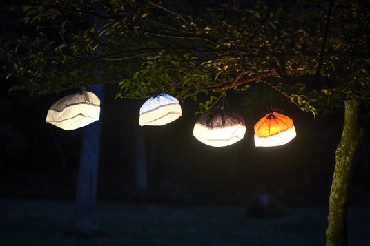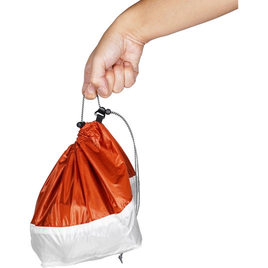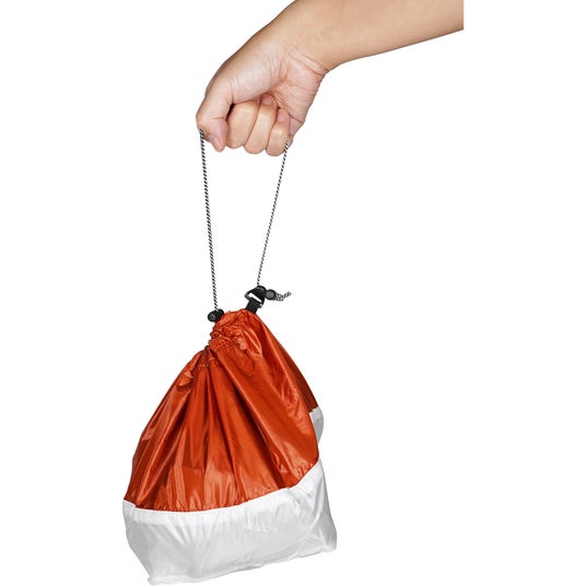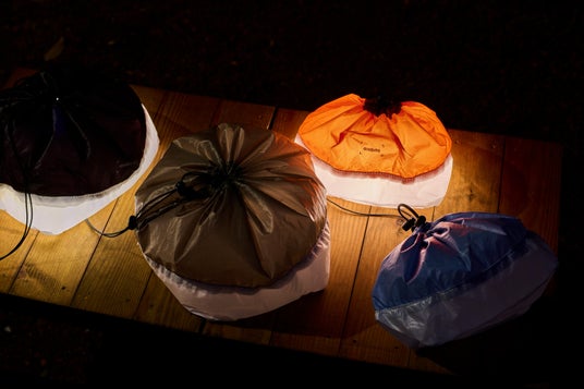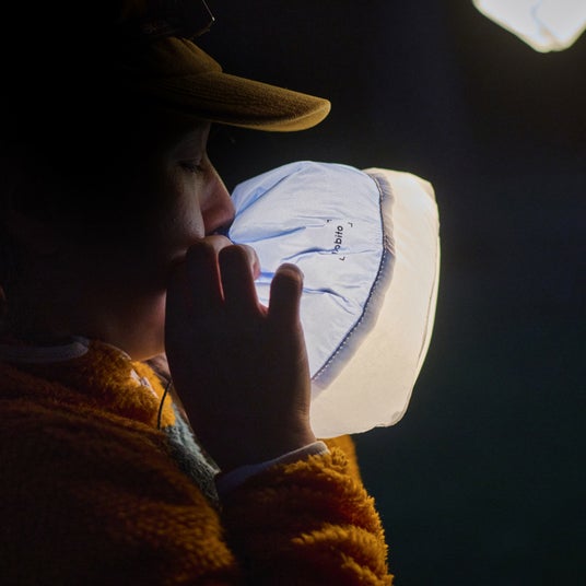 スタッフサックにランタンシェードの機能をプラス。息を吹き込むと、ぼんぼりのような可愛らしいランタンシェードに。スタッフサックの紐を一工夫することで、高さ調整も可能。