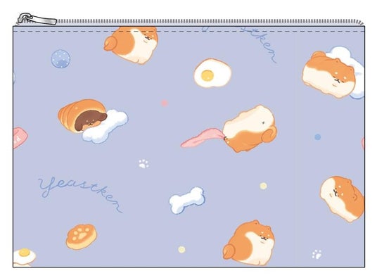 パンのわんこのキャラクター「いーすとけん。」と、とってもちいさな猫のキャラクター「もぐにゃん」のイラストが入ったオリジナルお散歩バッグとポーチをデザイン・製作しました。かわいいデザインと実用性を兼ね備えたアイテムで、ペットとペットオーナーさまのお正月を特別に彩ります。