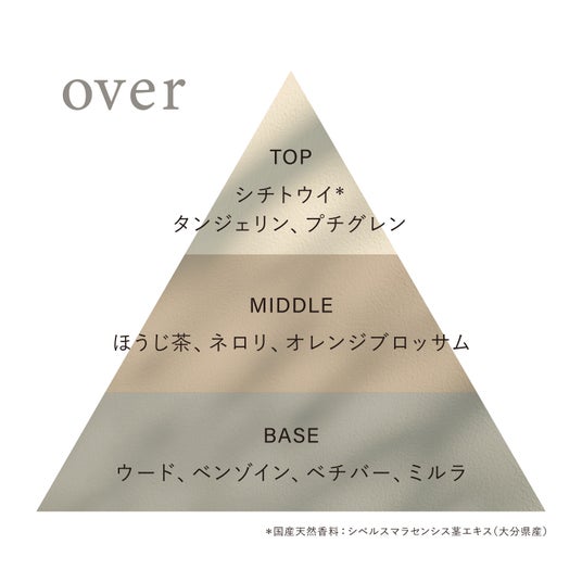 落ち着きのある藺草の香りと、清らかなネロリ。ウードの奥深くダークな甘さにほうじ茶を忍ばせた、スモーキーでどこか懐かしい香り。