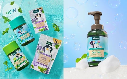 シリーズ一番人気の『クナイプ バスソルト スーパーミントの香り』は、4種の天然ミントとメントールを配合し、肌表面をすっと冷やすようなクール感をもたらします。また、ひんやり爽快感を感じながらも、きめの細かいふわふわの泡につつまれる『クナイプ 泡ボディウォッシュ スーパーミントの香り』も登場いたします。さらに、『クナイプ バスソルト ライムミントの香り』、『クナイプ バスソルト ラベンダーミントの香り』は、ミントのフレッシュさとラベンダーのリラックス感を兼ね備え、気分やシーンに合わせて選べる整うミントバスとしてお楽しみいただけます。