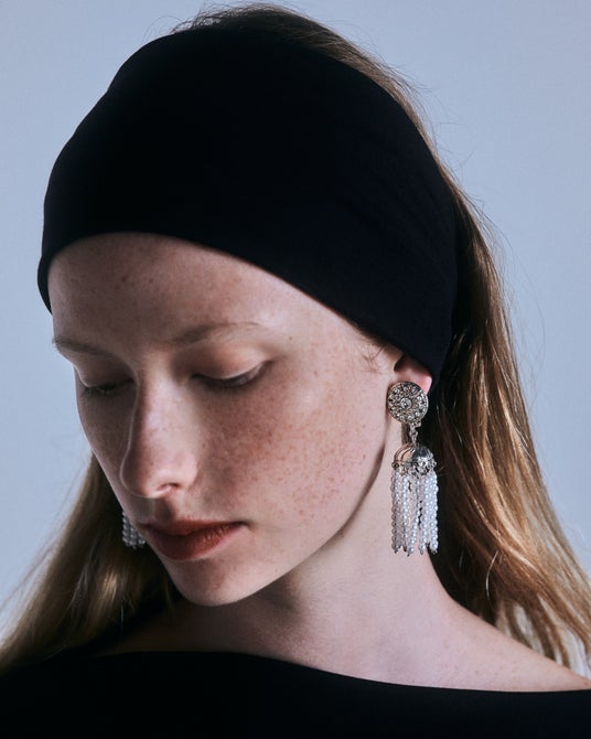 片耳に2つを着用すれば、オーセンティックなニットに幻想的な表情を宿せます。