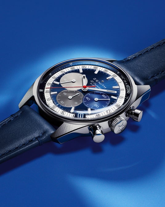 革命的なエル・プリメロ キャリバーを搭載した最初期のモデルのひとつ、1969年のゼニス A386ほど、強い影響力を持つアイコニックなタイムピースを見つけるのは難しいでしょう。その現代版である「クロノマスター オリジナル」は、単なる復刻にとどまりません。前モデルのタイムレスなデザインを受け継ぎながらも、現代のエル・プリメロが可能にする高性能と1/10秒単位の計測機能を備えています。今回、この不朽のアイコン「クロノマスター オリジナル」が、シグネチャーのトリコロール文字盤に鮮やかなブルーを採用し、現代性の際立つスタイルで新たに登場します。