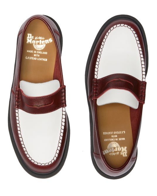 オープンを記念して、MADE IN ENGLAND (英国製コレクション)の最新ローファー“PENTON”を先行販売。エリアの特徴やニーズを捉え、英国製のアーカイブルックに良質なレザーを使ったバイカラーのペントンローファーは、取り扱い展開が限定されている特別な商品。Charles F. Stead社製の品質の高いバーガンディカラーのクラシックカーフレザーとドクターマーチン特融のホワイトスムースレザーのミックスで上品でモダンなクラシックスタイルを愉しめるローファーに仕上がっている。
