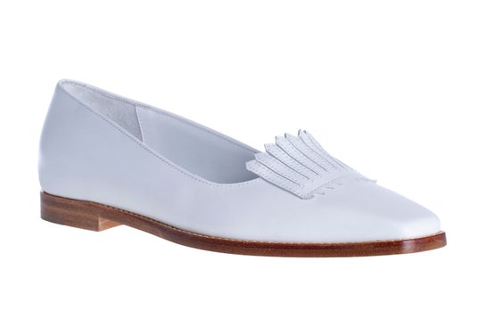 また、ゴルフシューズを思わせるフリンジディテールをあしらった「PAUSANIASFLAT/パウサニアスフラット」もラインナップ。ツイード素材とホワイトレザー、それぞれ異なる表情で、日常に洗練されたアクセントをもたらします。