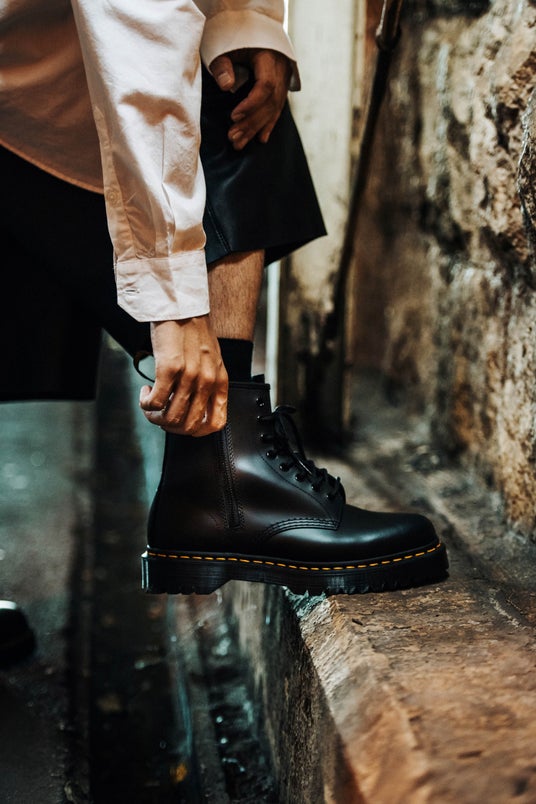 ドクターマーチンのアイコニックなブーツ“THE 1460 BOOT”は 1960 年 4 月 1 日にイギリスで初めて誕生しました。トレードマークのイエローウェルトステッチに、丸みを帯びたアッパー、溝入りのソールとユニークなアウトソールパターン を備えたブーツは当時、労働者たちのワークブーツとして使用されていました。その後、ドクターマーチンのブーツ やシューズは、自己表現や強さのシンボルとなり、アーティストや活動家、そしてミュージシャンなど、サブカルチャーシーンに浸透していきました。汎用性の高いデザインと耐久性、履き心地の良さから、ライブやミュージックフェス、ストリートファッションの世界の足元を飾り続け、エンパワーメントの旗印にもなっています。