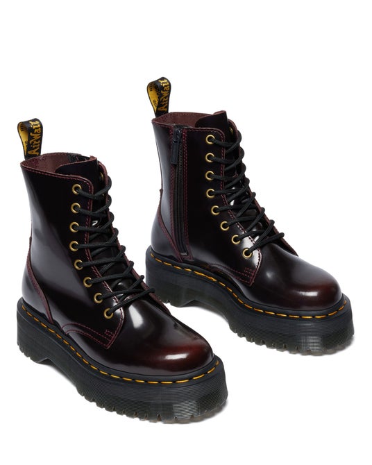 商品詳細:アイコンのTHE JADON BOOTをベースに、履き込むことで表情が変わるツートーン仕上げの”アルカディアレザー”CHERRY REDをアッパーに採用。ブラスカラーのアイレットが際立ち、ブランドアイコニックなイエローウェルトステッチとヒールループとのシナジーがブーツを際立たせる。