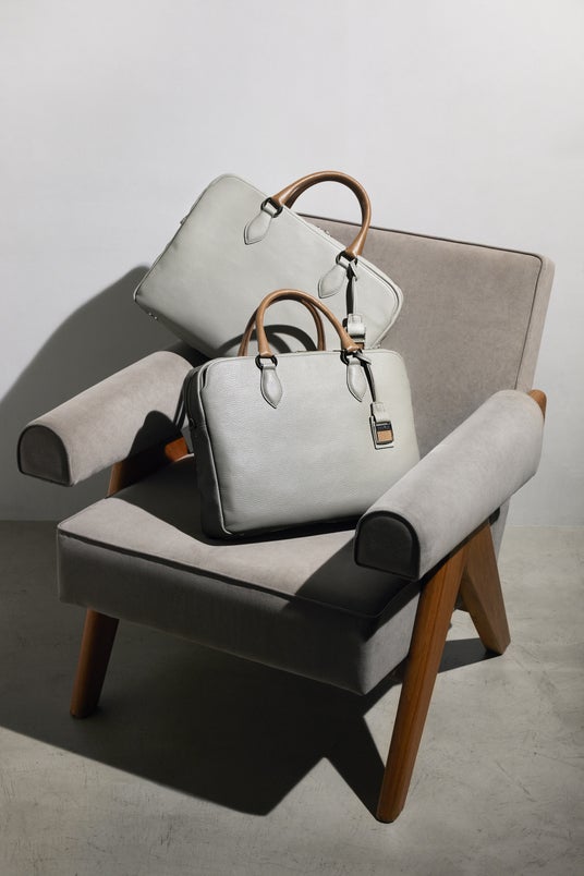 「リッチモンド 2」とのセットアップを意識してデザインされた、ビジネスコレクション「ホクストン」の銀座店限定カラーのブリーフケース。