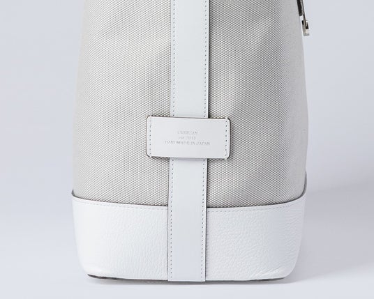 軽やかなキャンバス地にホワイトレザーを組み合わせ、軽さと品格を両立。異素材のコントラストが、洗練された佇まいを引き立てます。