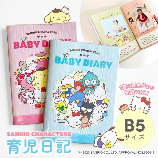 株式会社サンリオの人気キャラクターとコラボレーションした育児日記(ぬくもりピンク/すくすくブルー)。
