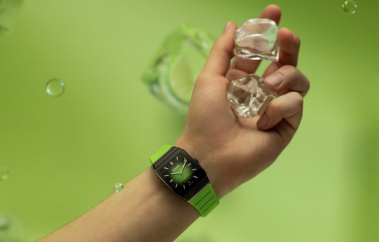 真昼の太陽のような輝きを放つレモンイエローのモデルは、ブラックからイエローへと美しくグラデーションするダイアルと、イエローのフッ素ラバー(FKM)製ストラップを組み合わせています。この夏らしいファッショナブルな表現は、オフィスやレストラン、砂浜など、どこで身に着けても太陽のような輝きを添えてくれるでしょう。
