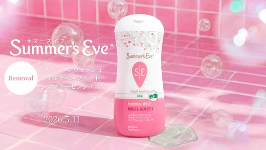 ピルボックスジャパン株式会社(本社:東京都港区北青山、代表取締役社長:稲積 憲)は、デリケートゾーンケアブランド「Summer’s Eve(サマーズイブ)」から、敏感肌向けのフェミニンウォッシュ「サマーズイブ フェミニンウォッシュ マルチベネフィット シンプリーセンシティブ<ピュアソープの香り>」を、人気の美容成分CICA(ツボクサエキス)配合のリニューアル版として、2026年5月11日より新発売することをお知らせいたします。