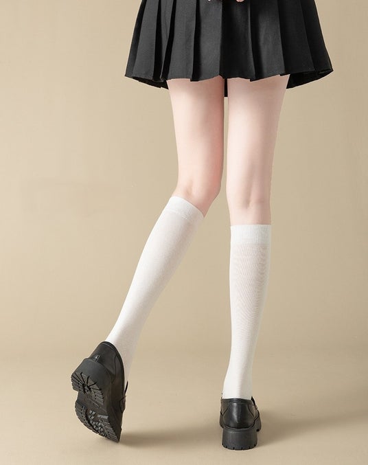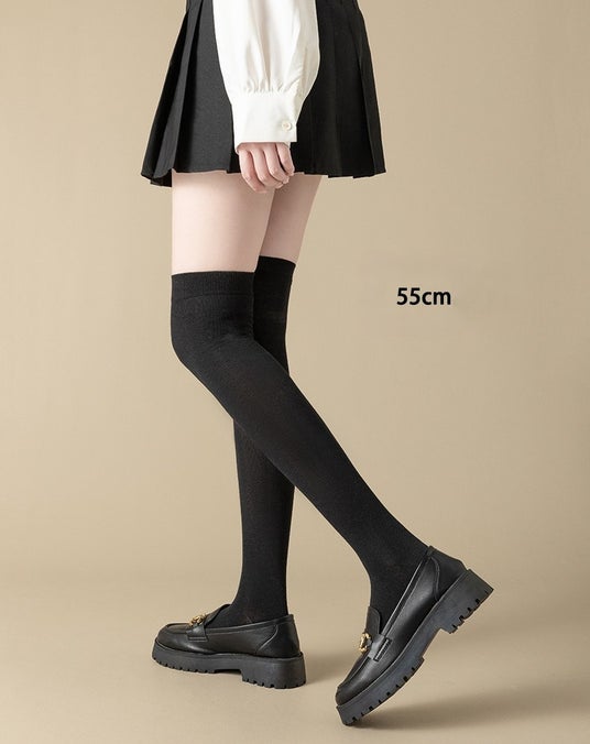 JKソックス 女性用のスカート下げ(JKソックス)です。ベルベット素材の黒色の膝上ソックス、長ソックス、ミドルソックス、ショートソックス、レッグス、タイツなど様々な長さのものがあります