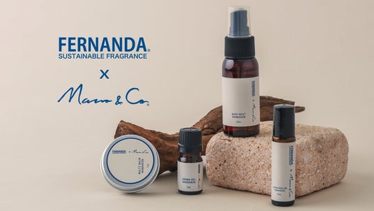Marvo&Coとのコラボレーションラインは2025年11月13日から、全4アイテムを販売。フェルナンダ直営店舗およびフェルナンダ公式オンラインストアにてお買い求めいただけます。こだわりを詰め込んだサスティナブルな香りをぜひお試しください。