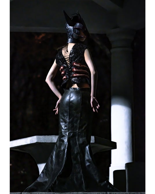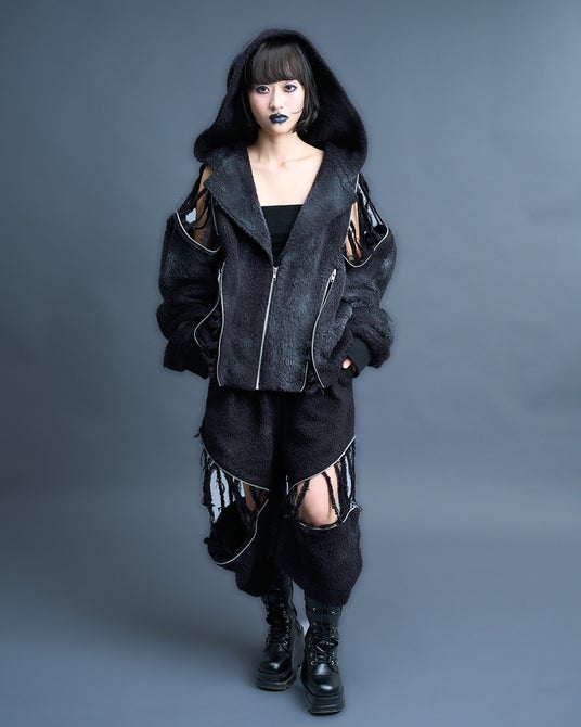 哲学的な視座を基盤に据え、分裂・不安定・破壊・批判といった痕跡を単なる “傷の記録” として消費するのではなく、“進化の地図” へと拡張する表現を志向しています。解体を自己表現の素材として消費するのではなく、哲学的思考と進化を内包した本来的な芸術行為をファッションとして具現化したいと考えています。