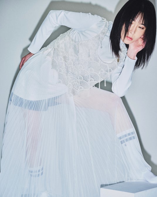 自身の音楽経験から、アパレルブランドとして交響楽団を冠し、オマージュ。楽章を追うごとに綴られる物語は、叙情性やディストピア的反骨心が共鳴。最新章は「織と編」が溶け合う唯一無二の特殊加工を軸に、行き場のないウエディングドレスを解体、再構築。物語の登場人物の服を手に取るような高揚感と共に、失われた純白に新たな旋律を宿す。