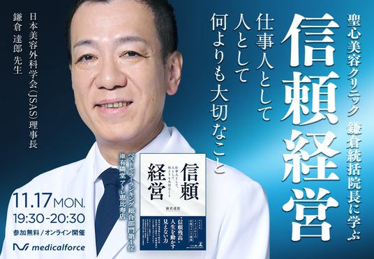 「とことん真面目に、美容医療。」をスローガンに、高品質な美容医療を提供する 聖心美容クリニック( https://www.biyougeka.com 医療法人社団美翔会 本院所在地:東京都港区六本木 全国11院)の統括院長である鎌倉 達郎医師が、医師・医療関係者向けのオンラインセミナーに登壇。