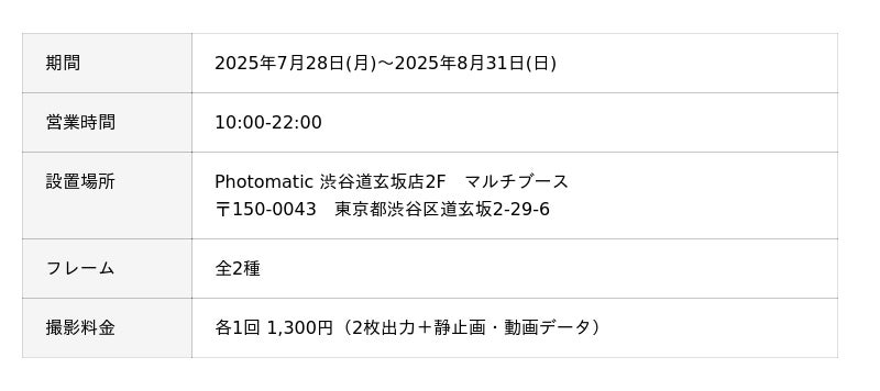 Photomatic 渋谷道玄坂店でも期間限定で撮影可能!